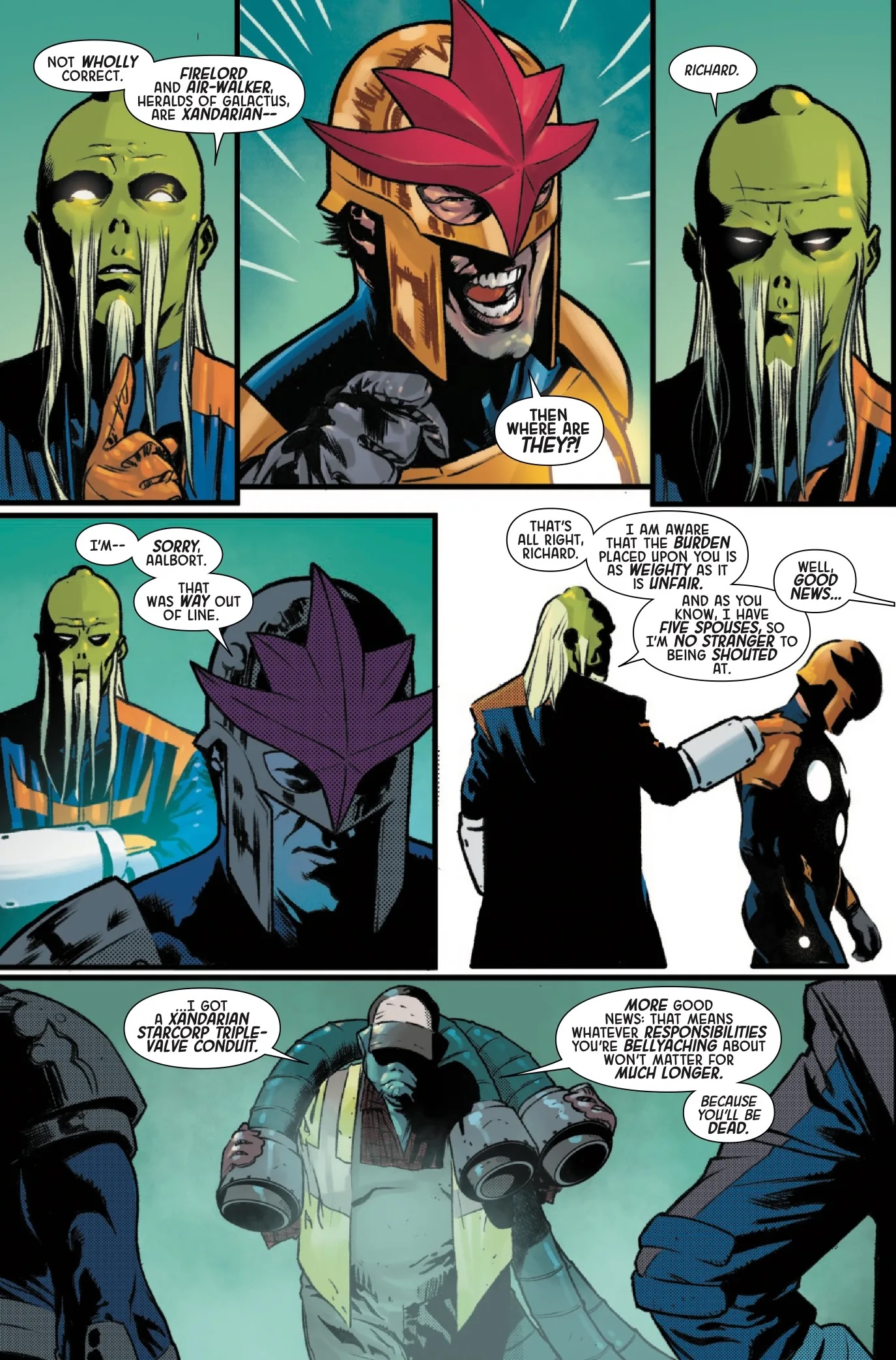 NOVA ON THE VERGE! An old grudge from the Annihilation War comes due as NOVA and RAVENOUS throw down with credits - to say nothing of life and death! - in the balance! Will Rich Rider survive to see a positive number in his bank account?! All is not as it seems, though, and crew member CAMMI will make a discovery that changes everything!